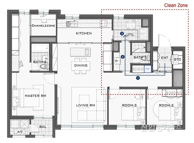 이 시스템은 공기청정기술을 넘어서서, 단지 진입부터 세대내부까지 단계적으로 정화할 방법을 찾아내기 위해 고민한 결과라고 회사는 강조한다.
