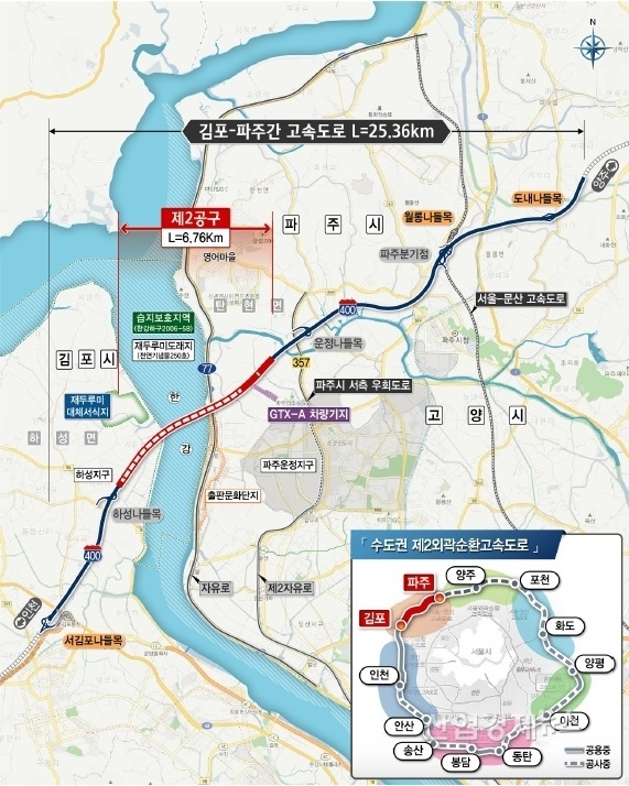 [엔트로피타임즈 최기훈 기자] 수도권 제2외곽순환도로 가운데 김포에서 파주시를 잇는 구간 공사를 현대건설이 맡게 됐다.