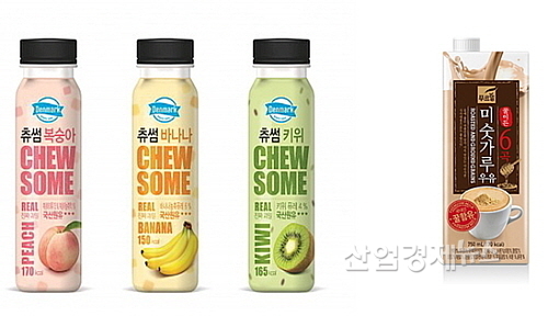 또 동원F&B의 프리미엄 유제품 브랜드 ‘덴마크’에서는 업계 최초로 과육이 씹히는 진짜 과일우유 ‘덴마크 츄썸’ 3종을 지난해 8월 선보였다.