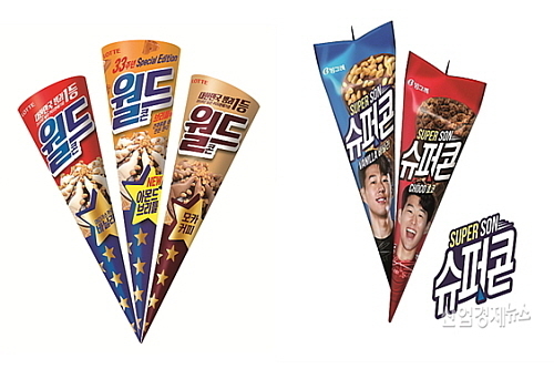 각사에 따르면 1위 롯데제과는 지난 25일 자사 스테디셀러인 월드콘 출시 33주년을 맞아 특별 기획제품을, 또 2위 업체 빙그레는 지난해 4월 출시해 빠른 속도로 시장에 안착중인 슈퍼콘의 새 모델로 축구 스타 손흥민을 지난 3월 발탁 촬영한 CF를 최근 선보이며 제각각 시장 공략에 나선 것.