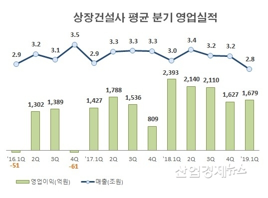 올해 1분기에 상장 건설사의 평균 매출액은 2.8조원인 반면, 비상장사는 1.4조원에 그쳐 외형면에서 절반 수준밖에 안된다.