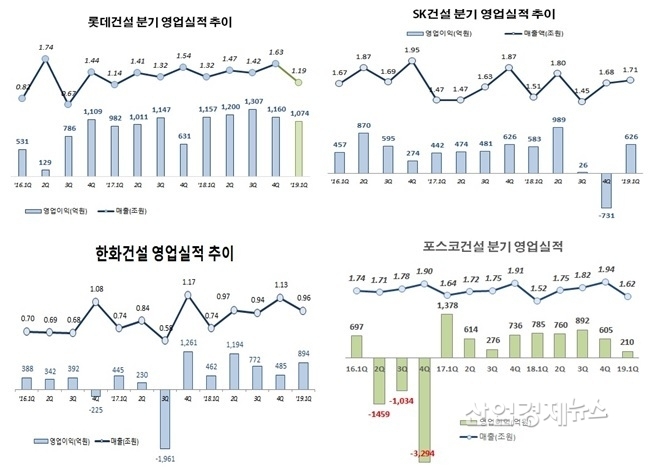 포스코건설은 2016년 2분기에 1459억원 손실, 3분기 1034억원 손실에 이어 4분기에는 3294억원의 손실을 내며 업계에 충격을 줬다. 한화건설도 10조원이 넘는 이라크 대형 프로젝트가 현지의 정치적 분쟁으로 지연되면서 2017년 3분기 1961억원의 손실을 내기도 했다.