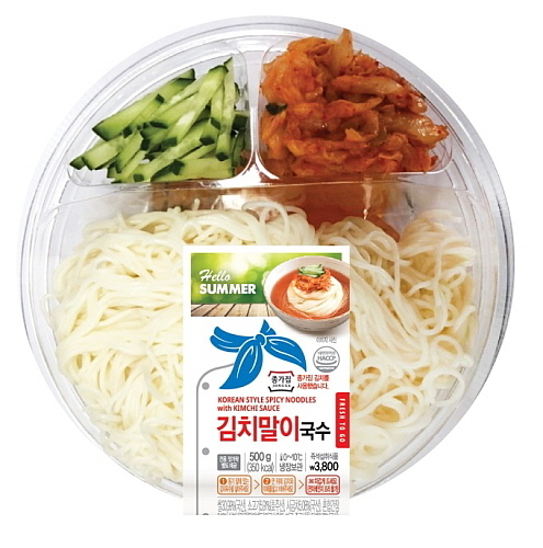 '김치말이국수'는 쫄깃한 소면과 김치, 오이, 육수로 구성됐으며, 구매 시 얼음컵을 제공해 더욱 시원하게 즐길 수 있다. 또한 종가집 김치를 사용하여 적당히 익은 김치의 산도(pH4)를 균일하게 유지해 육수와 맛의 균형을 이루고 있다.