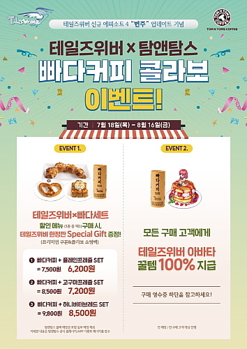 탐앤탐스와 넥슨은 테일즈위버 세트 메뉴 출시를 기념해 다양한 게임 혜택을 제공한다.