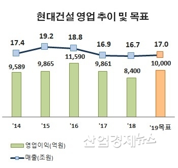 현대건설은 올초 2019년 사업계획을 발표하면서, 영업이익 1조원을 달성해서 업계 맏형 자리를 되찾겠다는 목표를 발표했다. 현대건설은 2016년에 영업이익 1조1590억원을 기록하며 1조클럽에 진입한 바 있다.