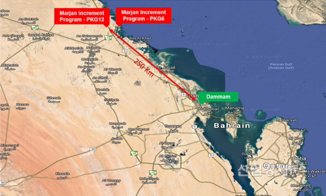 사우디 마잔 지역 해상 유전에서 생산되는 가스와 원유를 처리하기 위한 개발 패키지로 공사기간은 41개월이다.