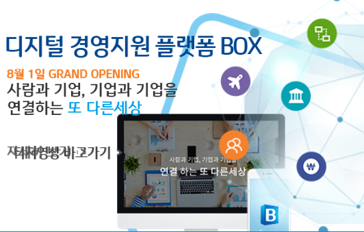 BOX는 ‘기업 경영지원 전문가(Business Operation eXpert)’라는 의미로, 생산‧자금‧인력‧재무‧마케팅 등 중소기업의 경영활동 전반을 지원하는 플랫폼이다.
