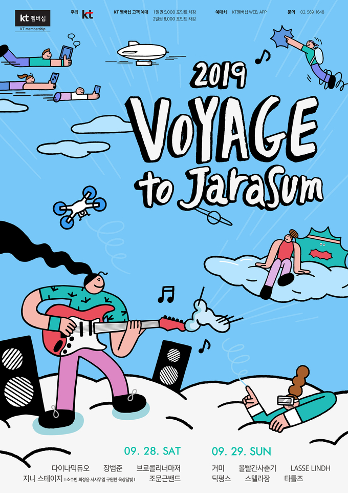 [엔트로피타임즈 박진경 기자] KT는 경기도 가평군 자라섬에서 KT 고객을 위한 문화 축제 ‘2019 보야지 투 자라섬(VOYAGE to Jarasum)’을 9월 28일~29일 양일간 개최하며, 19일부터 티켓 예매를 시작한다고 16일 밝혔다.
