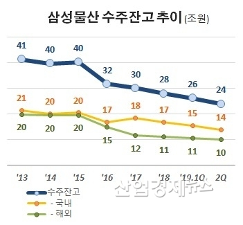 이렇게 신규수주 규모가 줄면서 삼성물산의 수주잔고도 계속 줄어드는 추세를 보이고 있다.