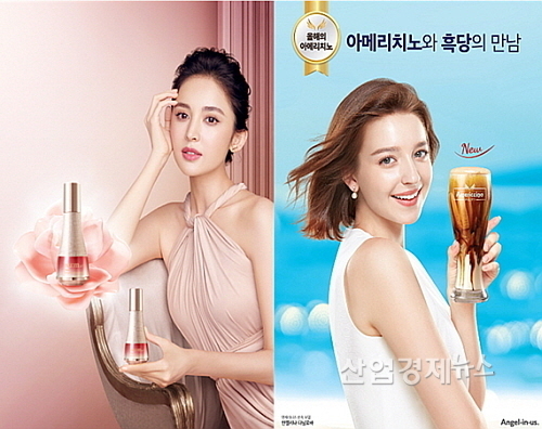 20일 유통가에 따르면 LG생활건강은 중국의 인기 스타 구리나자를 앞세운 숨37° ‘플레르’ 라인 출시 기념 CF컷을 또 엔제리너스는 러시아 출신 모델 안젤리나 다닐로바의 러블리 천사 컨셉을 앞세운 CF컷을,