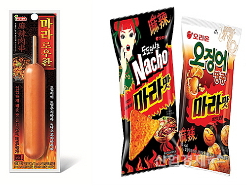 롯데푸드가 지난달 28일 마라소스를 넣어 얼얼하게 매운 맛을 즐길 수 있는 이색 소시지 ‘마라로우촨’을, 오리온에서는 중독성 높은 ‘마라(麻辣)’를 접목한 ‘오징어땅콩 마라맛’, ‘도도한나쵸 마라맛’ 등 신제품 2종을 잇따라 선보이며 맥주안주 시장 공략에 나선 것.