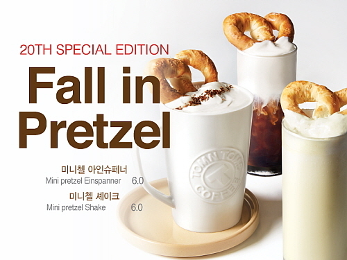 한편, 탐앤탐스는 신메뉴 출시를 기념해 23일부터 20주년 스페셜 에디션을 전 매장에서 선보인다. 폴 인 프레즐 음료 2잔과 12,000원 상당의 화이트 그란데 머그 1개로 구성한 세트를 13,000원에 한정으로 판매한다. 20주년 스페셜 에디션은 소진 시 자동 판매 종료된다.