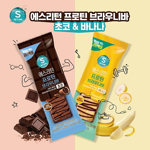 이어 지난 24일 선보인 고단백질 바 제품, ‘에스리턴 프로틴 브라우니바’는 브라우니 형태의 단백질 바로, 맛에 초점을 맞춘 제품이다.