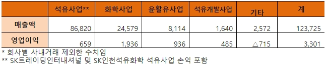 SK이노베이션 2019년 3분기 영업실적 (단위 : 억원)