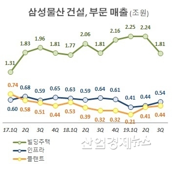 삼성물산 건설부문은 빌딩주택과 인프라, 플랜트 등 사업을 영위하고 있는데, 올해 들어와 인프라사업과 플랜트사업은 증가세를 보이고 있는 반면 주택빌딩사업의 매출은 3분기에 19.2%나 감소했다.