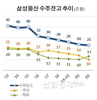 올해 1분기말 수주잔고는 26조원이었지만, 2분기말에는 24조원으로 줄었고, 3분기에는 23조원의 수주만 남았다.