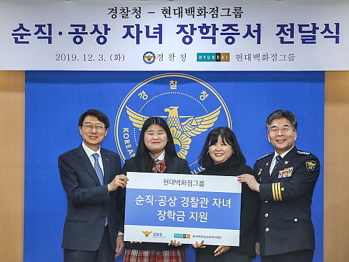 [엔트로피타임즈 민혜정 기자] 현대백화점그룹이 순직 경찰관 자녀(170명)와 공무 중 상해를 입은 공상(公傷) 경찰관 자녀(100명) 등 총 270명에게 장학금 4억 원을 전달키로 해 훈훈한 감동을 주고 있다.