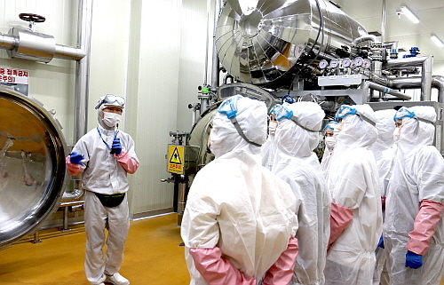 참가자들은 직접 위생복, 토시, 위생 고글, 눈썹 테이프 등 각종 위생 장비를 철저히 착용하고 에어샤워, 발 소독기 등을 통과해 생산라인에 들어가 볼 수 있었다. 특히 먼지가 날리지 않도록 문 열리는 속도까지 조정한 세심한 위생 관리를 직접 확인했다.