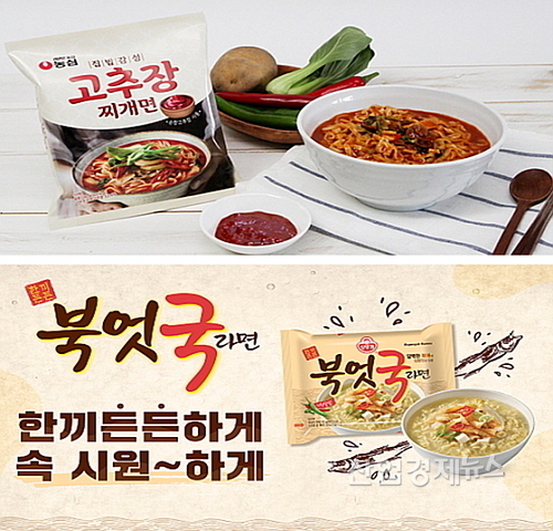 이에 오뚜기도 지난 26일 담백한 북어의 진한 맛으로 한끼든든한 ‘북엇국라면’을 출시, 맞불 작전에 돌입했다.