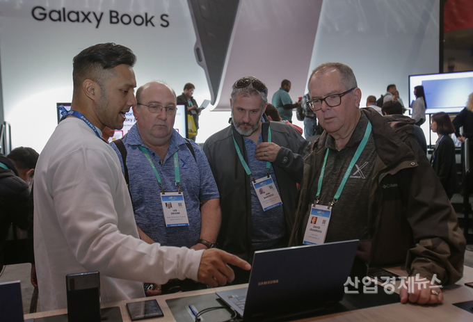 갤럭시 체험관에서 관람객들이 '갤럭시 북 플렉스'를 시연해보고 있다.