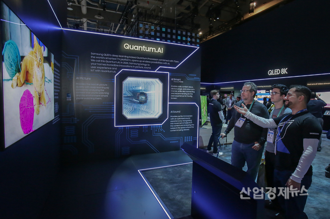 관람객들이 '퀀텀닷 AI'가 적용된 'QLED 8K'의 화질을 감상하고 있다.