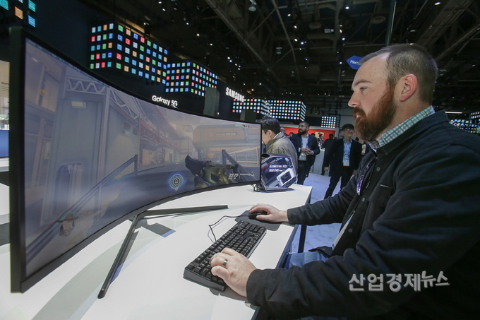 관람객이 게이밍모니터 '오디세이'를 체험해보고 있다.