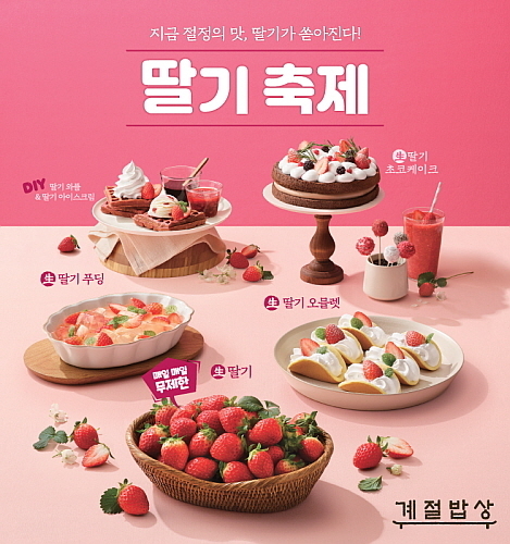 먼저 계절밥상은 딸기 시즌을 맞아 지난 9일 신메뉴를 선보였다. 계절밥상의 이번 딸기 축제 테마는 ‘지금 절정의 맛, 딸기가 쏟아진다! 딸기축제’다.