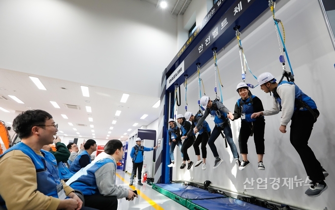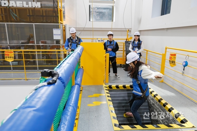 [엔트로피타임즈 최기훈 기자] 대림산업이 현장의 안전의식을 제고하기 위해 신입사원들에게 현장 상황을 재현한 안전교육을 실시하고 있다.