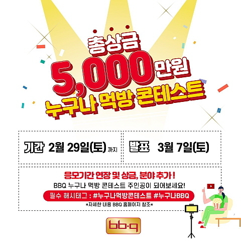BBQ, ‘누구나 먹방 콘테스트’ 응모기간 연장 및 상금 증액