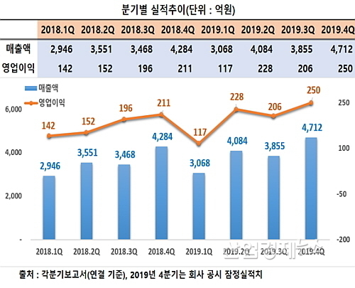 2019년 매출 1조5718억(10.3%↑), 영업이익 802억(14.3%↑)...사상 최대 매출 기록