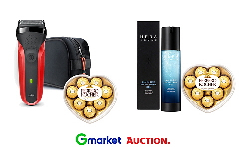 우선 G마켓과 옥션의 기획전 페이지를 통해 초콜릿과 선물을 묶은 단독 특가 패키지 2종을 3만 원대에 한정 수량으로 선보였다. ‘페레로로쉐(T8)+브라운 전기면도기 시리즈3(300TS)’와 ‘페레로로쉐(T8)+헤라 옴므 올인원 페이셜드링크’ 등이 대표적이다.