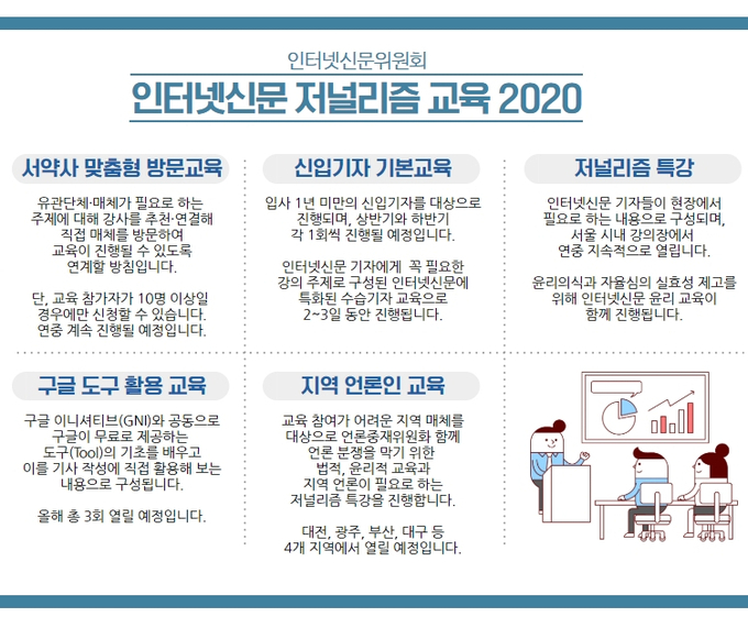 인신위는 교육계획에서 금년 한 해 동안 ▲서약사 맞춤형 방문 교육 ▲신입기자 기본교육 ▲저널리즘 특강 ▲좋은 기사 작성을 위한 구글 도구 활용 교육 ▲지역 언론인 교육 등을 진행할 예정이라고 밝혔다.