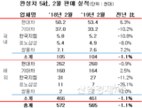 완성차 2월 판매, 전년比 1.1%↓‥부진연속